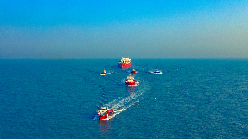 Photo caption: The first-crew boat Summit PSA-5 along with other port service vessels are escorting 'Summit LNG' off-Moheskhali