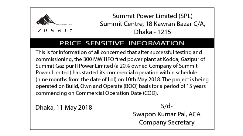 PSI: CoD of Summit Gazipur II Power Limited (300 MW)