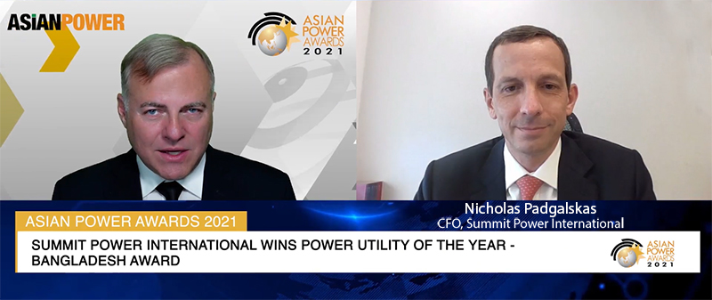 Photo caption: Nicholas Padgalaskas, CFO of Summit Power International received the Power Utility of the Year - Bangladesh in recognition as the top power utility provider in Bangladesh at the Asian Power Awards 2021.
